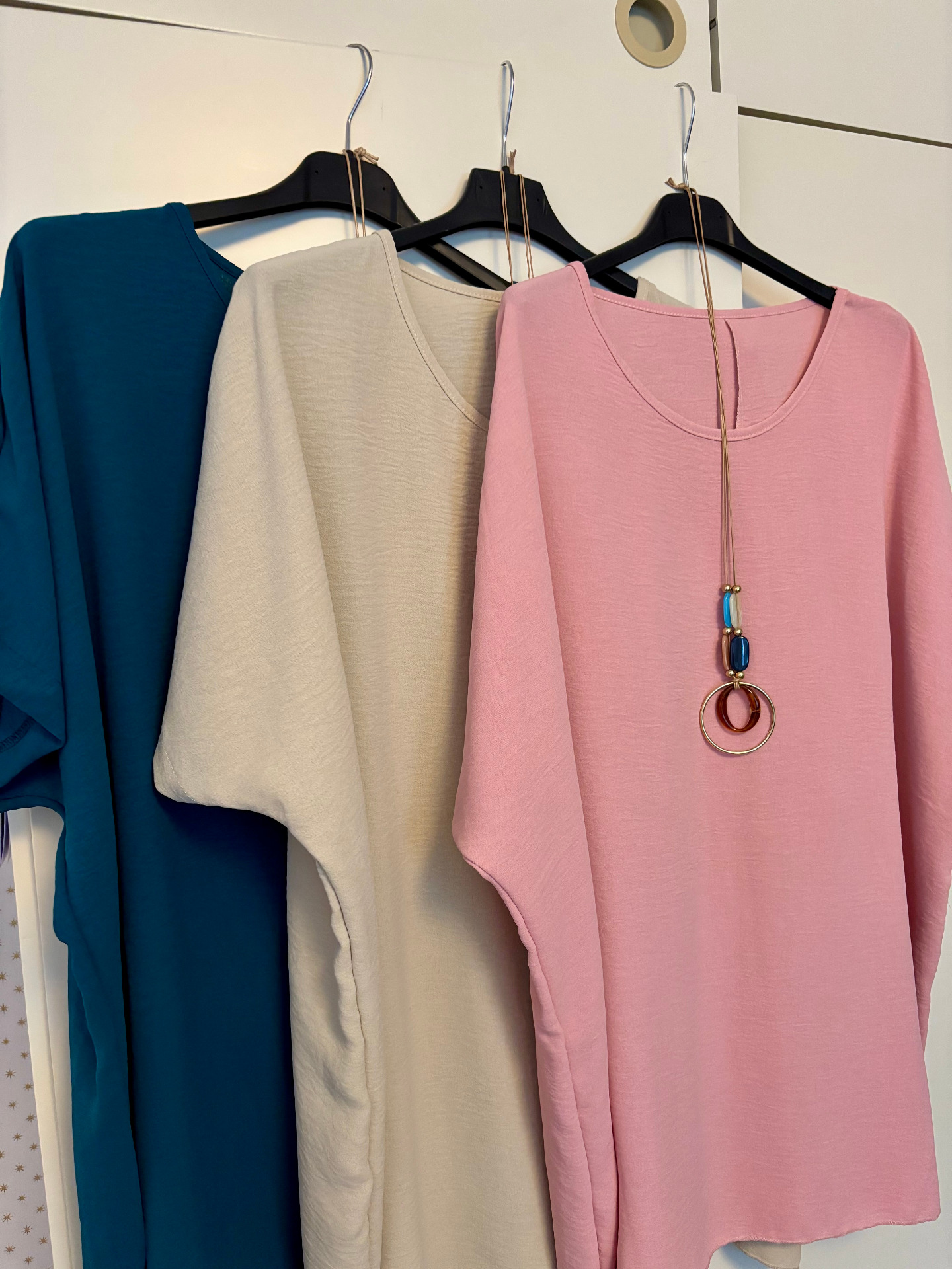 Tyylikäs A-linjainen pliseerattu neulemekko / tunika miellyttävän ohutta mutta lämmittävää ja joustavaa neulosta. Pidemmälle toimii myös tunikana housujen tai legginssien kanssa. Sisältää kaulakorun. Materiaali: 60% viskoosi, 35% villa, 5% elastaani Koko: One Size 40 - 48 Mitat: Kainalosta-kainaloon noin 58 cm. Pituus olkapäältä helmaan 100 cm. Pesuohjeet: Suosittelemme villapesua, ei rumpukuivausta. Valitse väri valikosta alla ⬇
