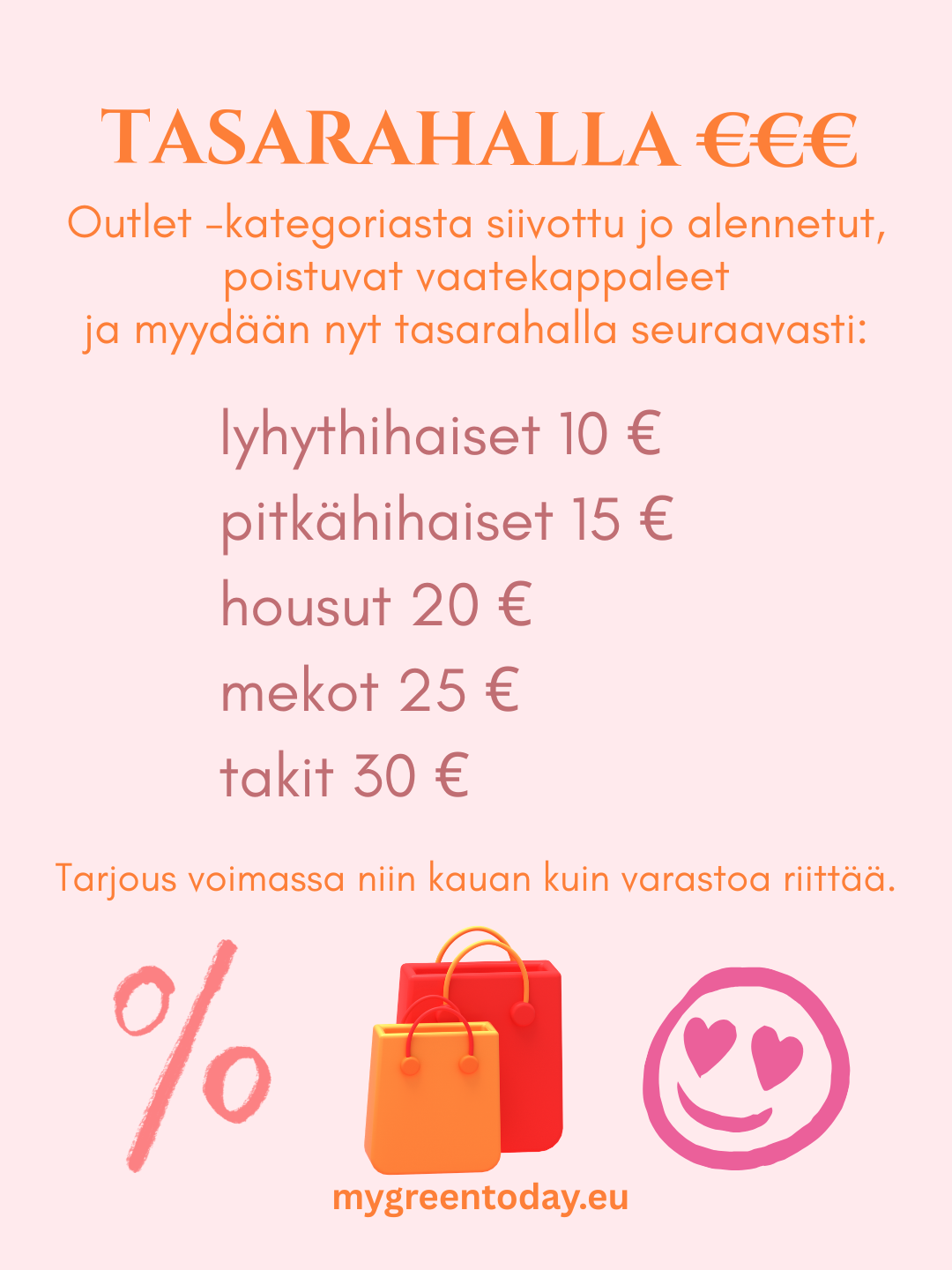 Lämpimästi tervetuloa tasaraha -ostoksille!