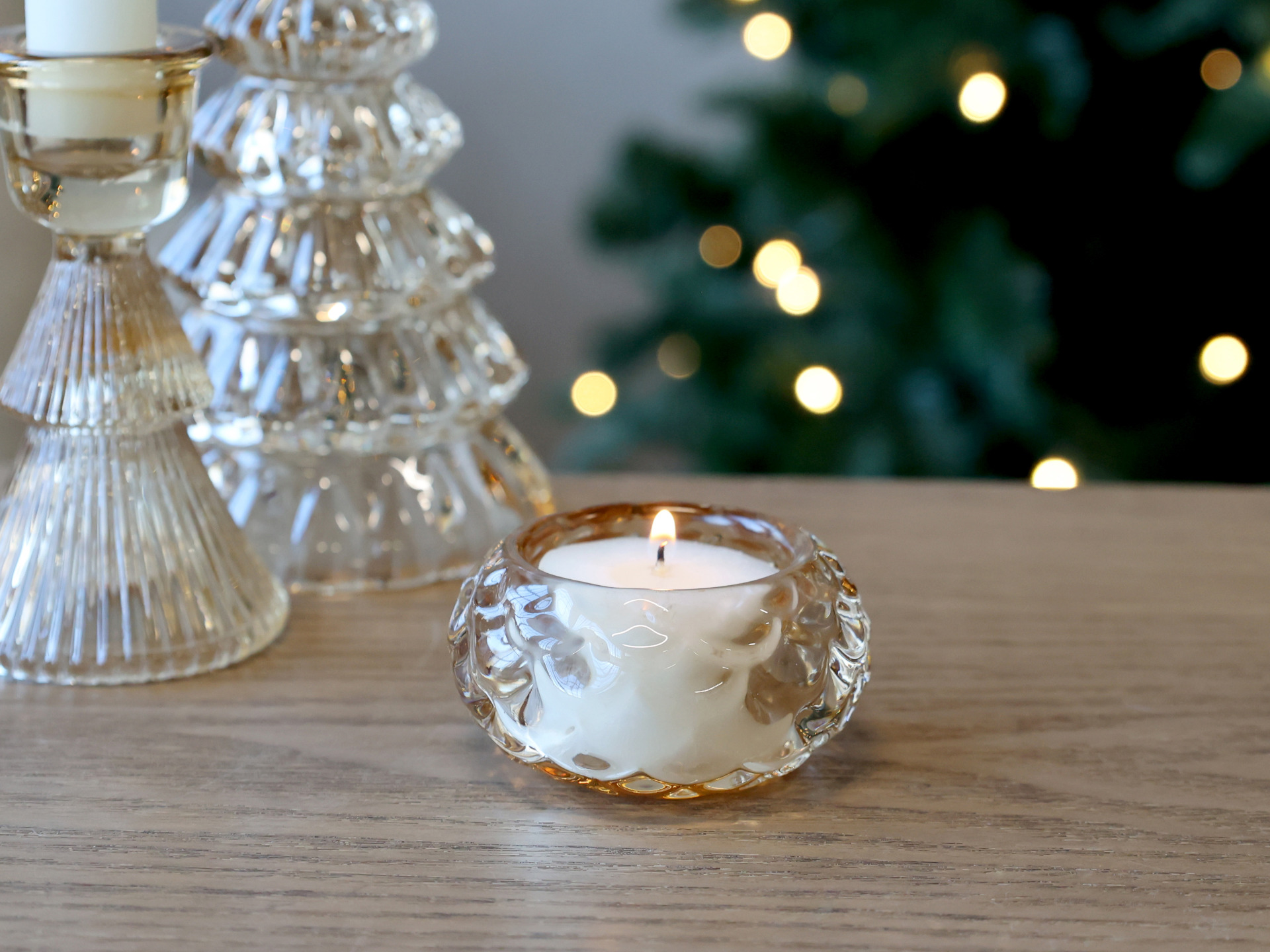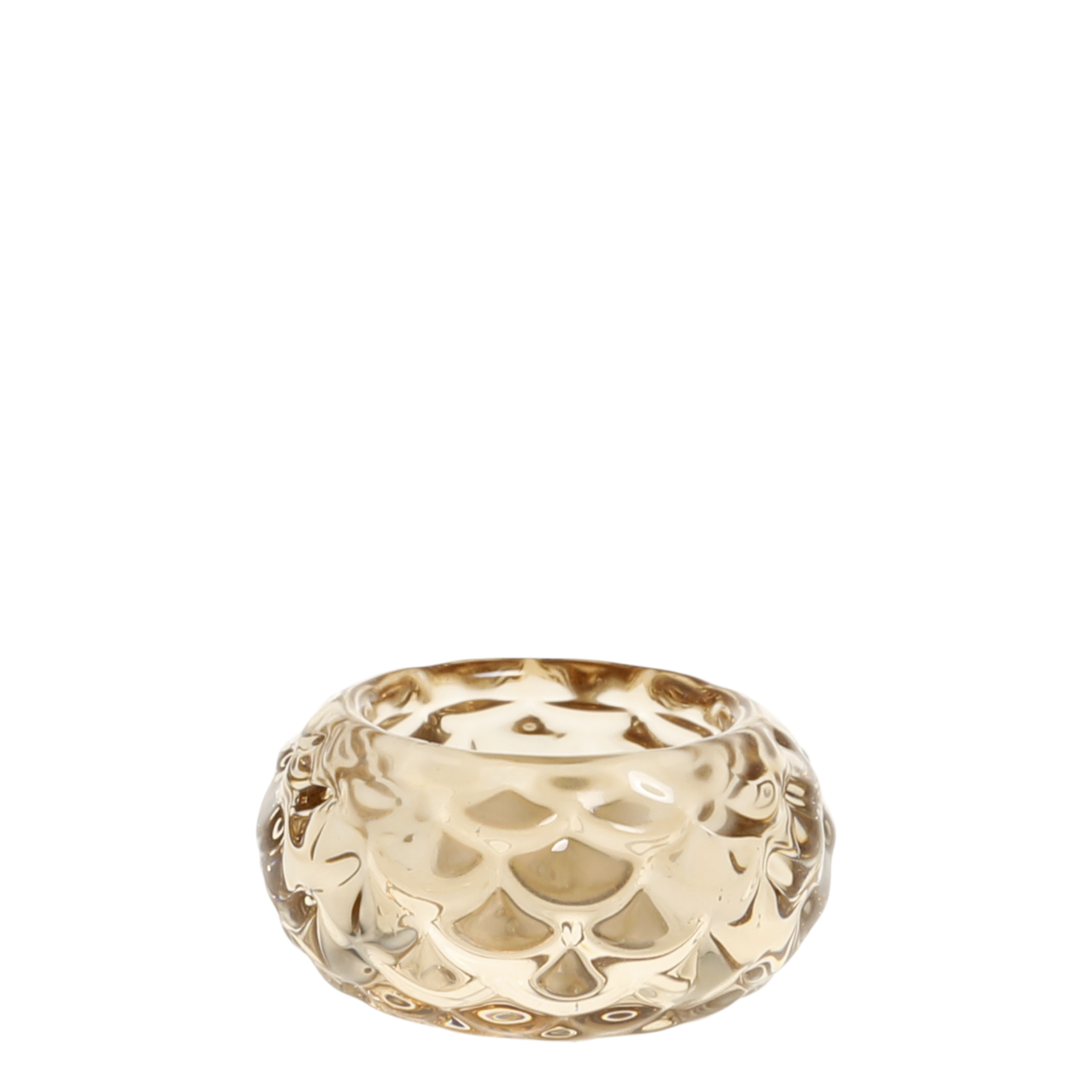 Charmig värmeljuslykta i bärnstensfärgat glas från Chic Antique. Sprider ett varmt, glittrande sken – en elegant detalj som skapar speciell stämning i hemmet.