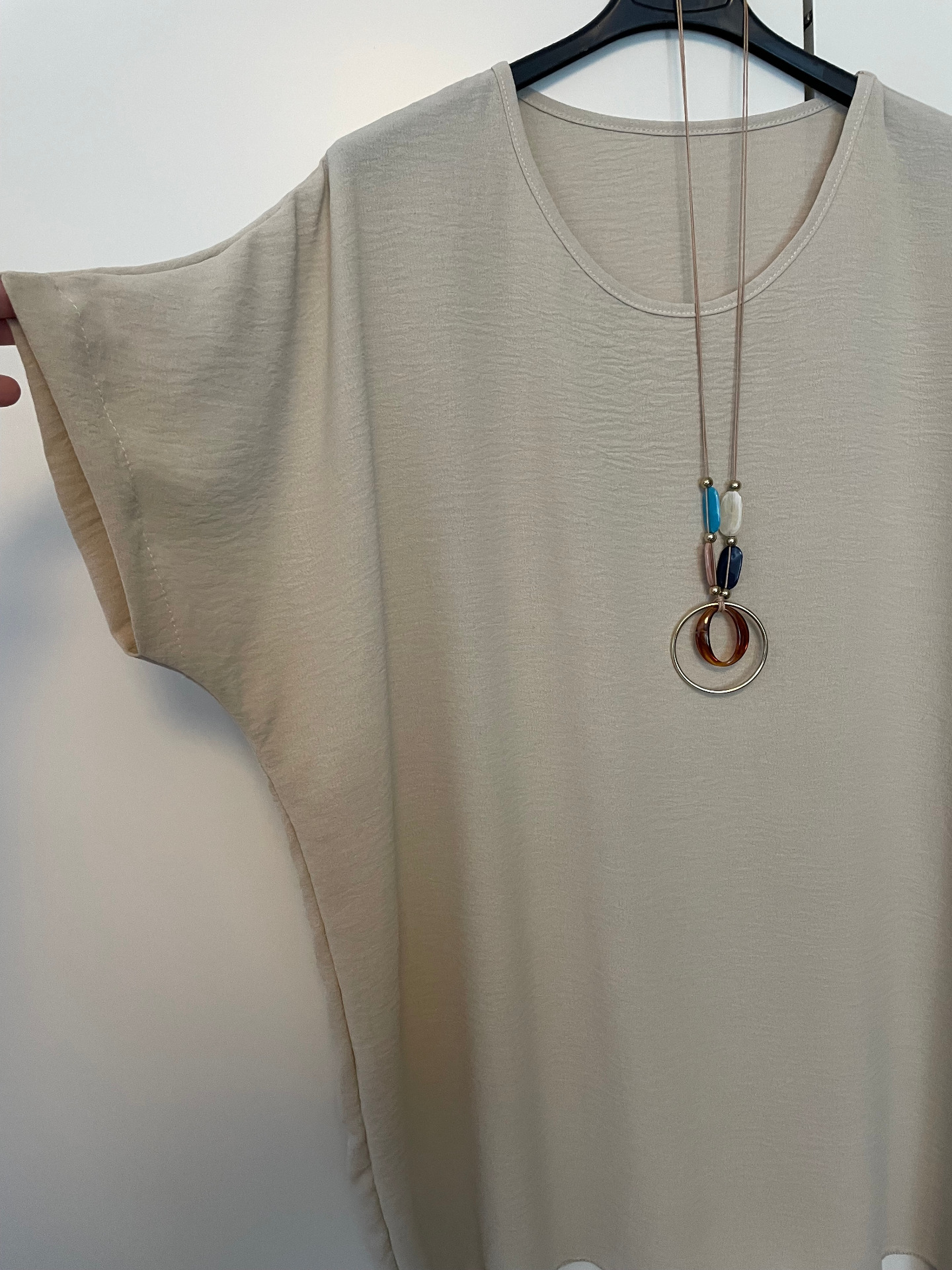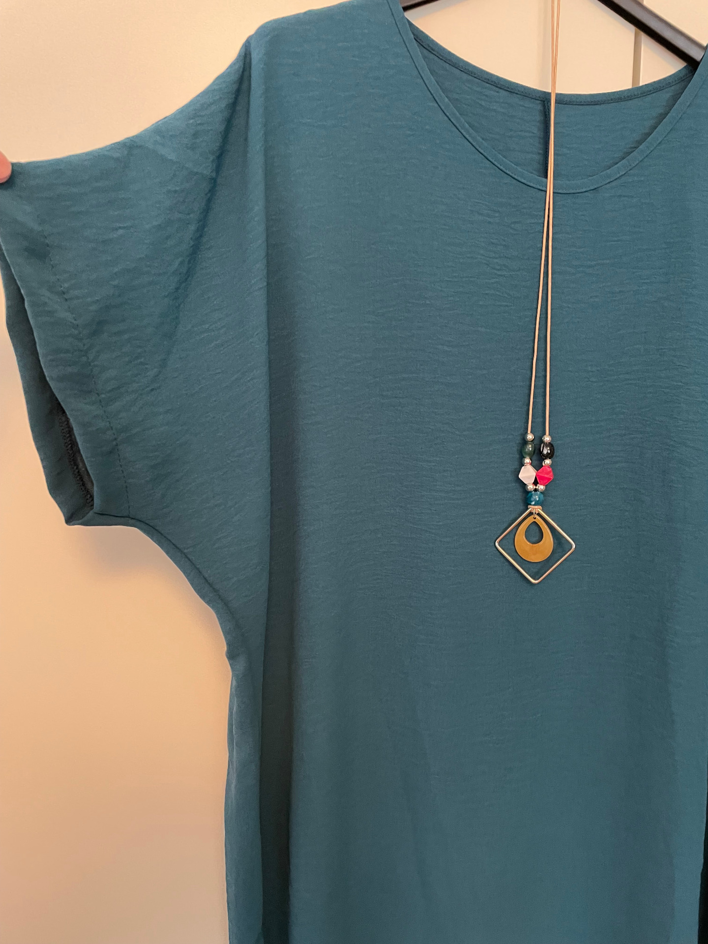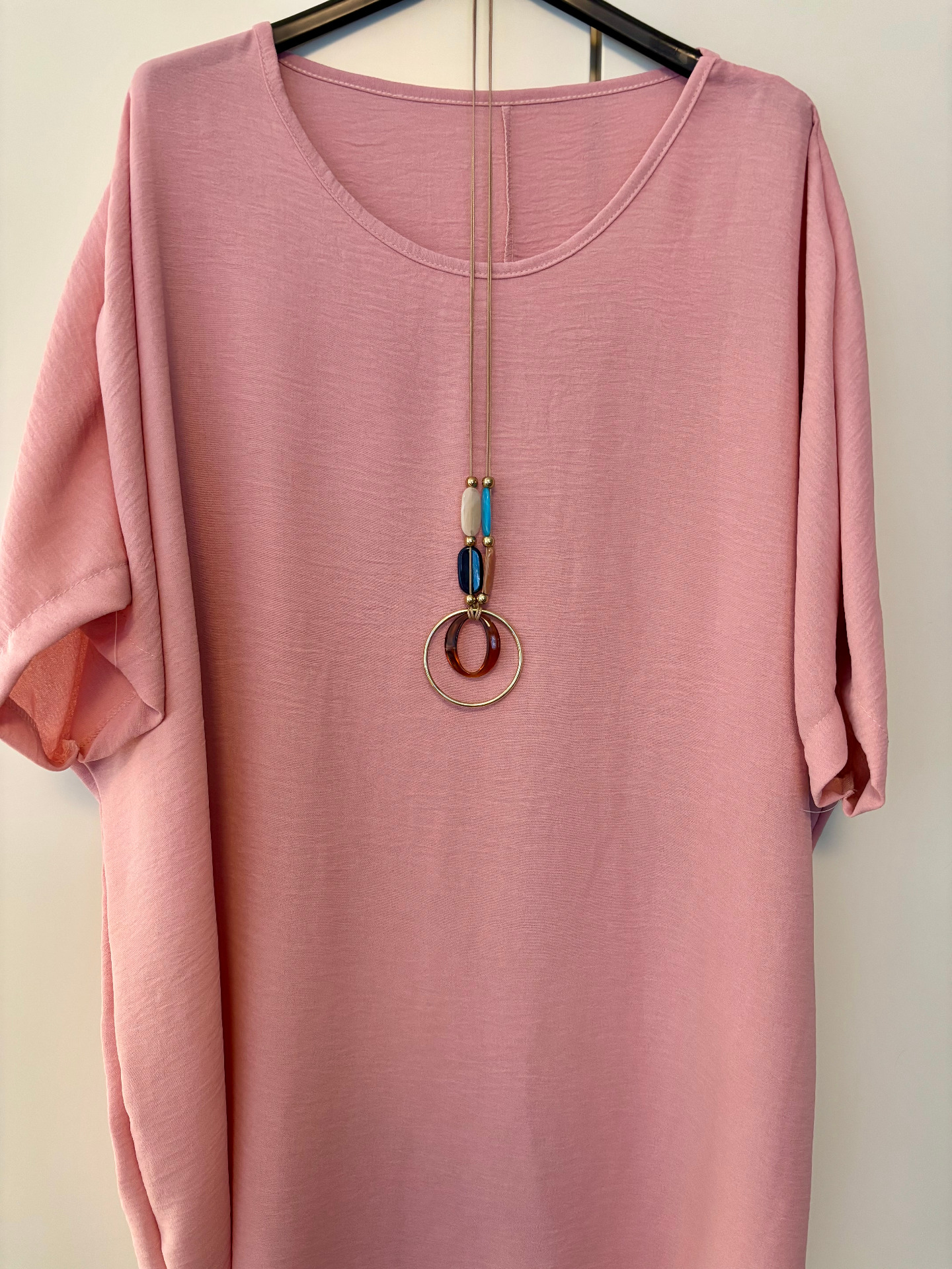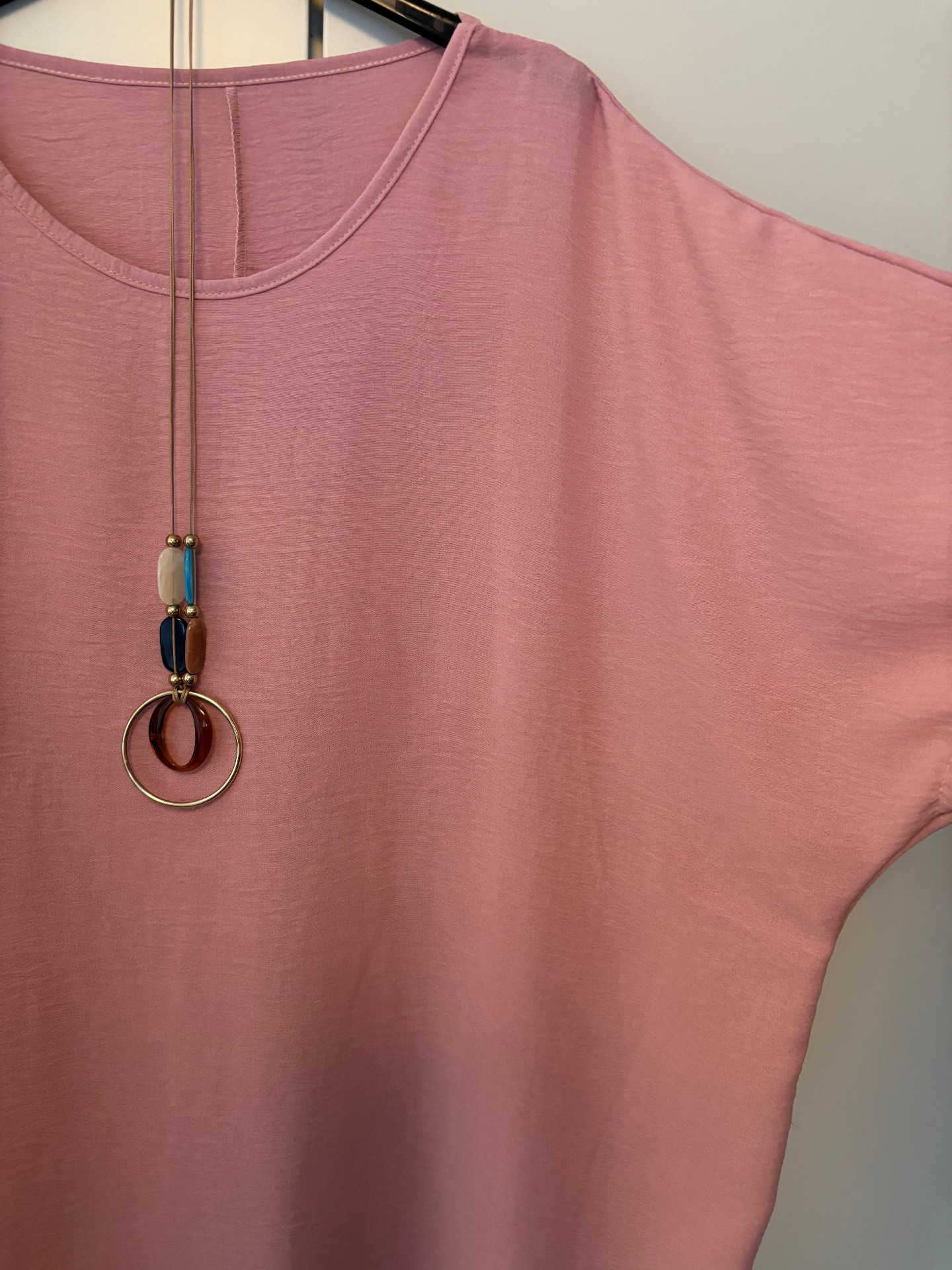 Praktisk enfärgad damblus. Lätt att kombinera och passar både till vardags och mera festliga tillfällen. Lös passform.