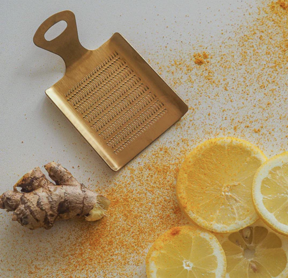 Inkivääri raastinrauta joka on osa GOLD -sarjaa. Keittiövälineet voivat olla paitsi käytännöllisiä myös tyylikkäitä! Nämä välineet tuovat luksusta arkeen. Raastimella raastat muskottipähkinät, kaakaopavut, suolakivet ja muut mausteet ja elintarvikkeet hienoksi jauheeksi tyylikkäästi ja kätevästi. Tällä tavalla viimeistelet drinkit ja herkulliset annokset huippu ammattilaisen tyyliin.