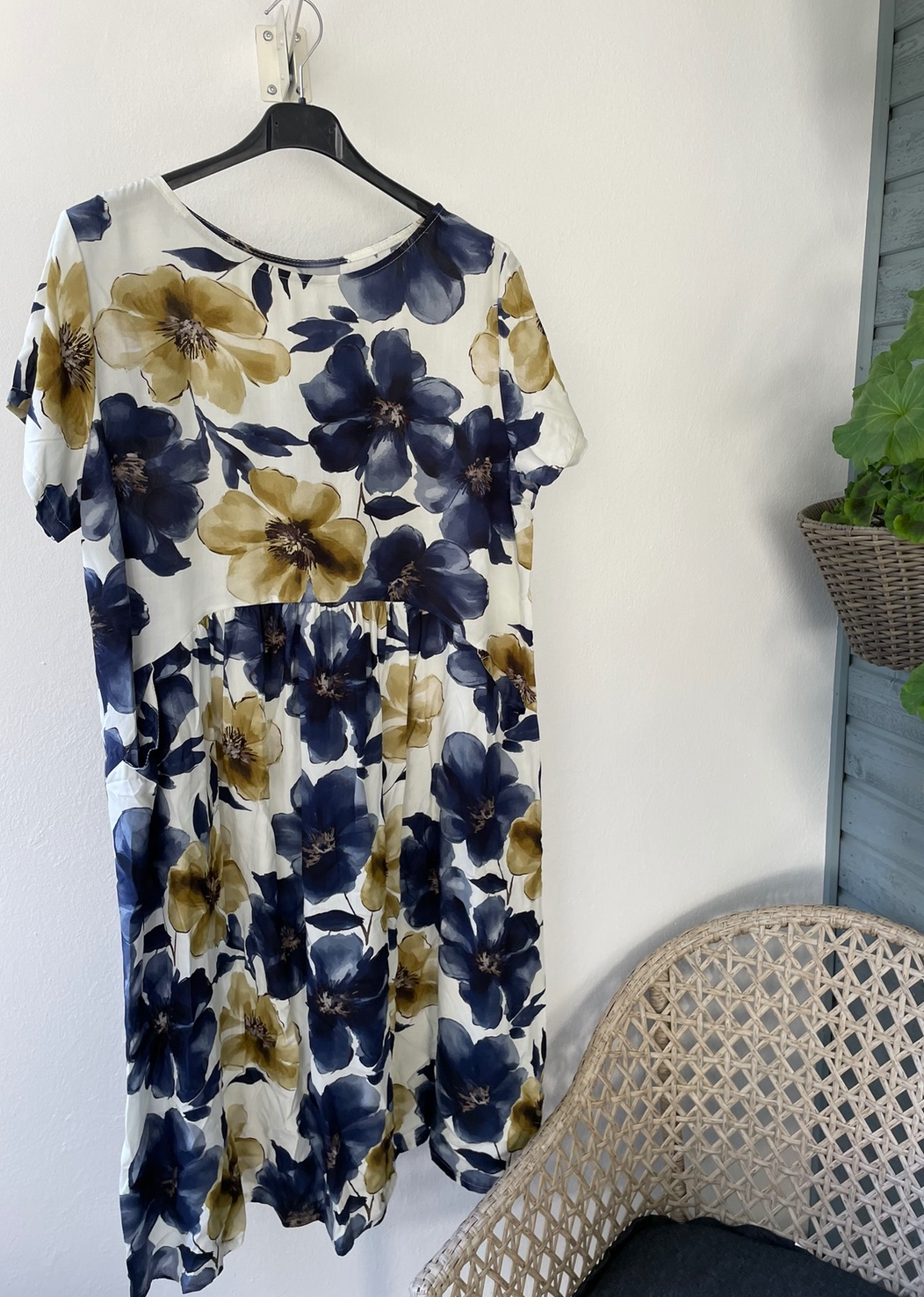 Kaunis Italialainen kukkakuosinen mekko herkullisissa trendiväreissä. 2 taskua edessä. Lyhyt hiha.