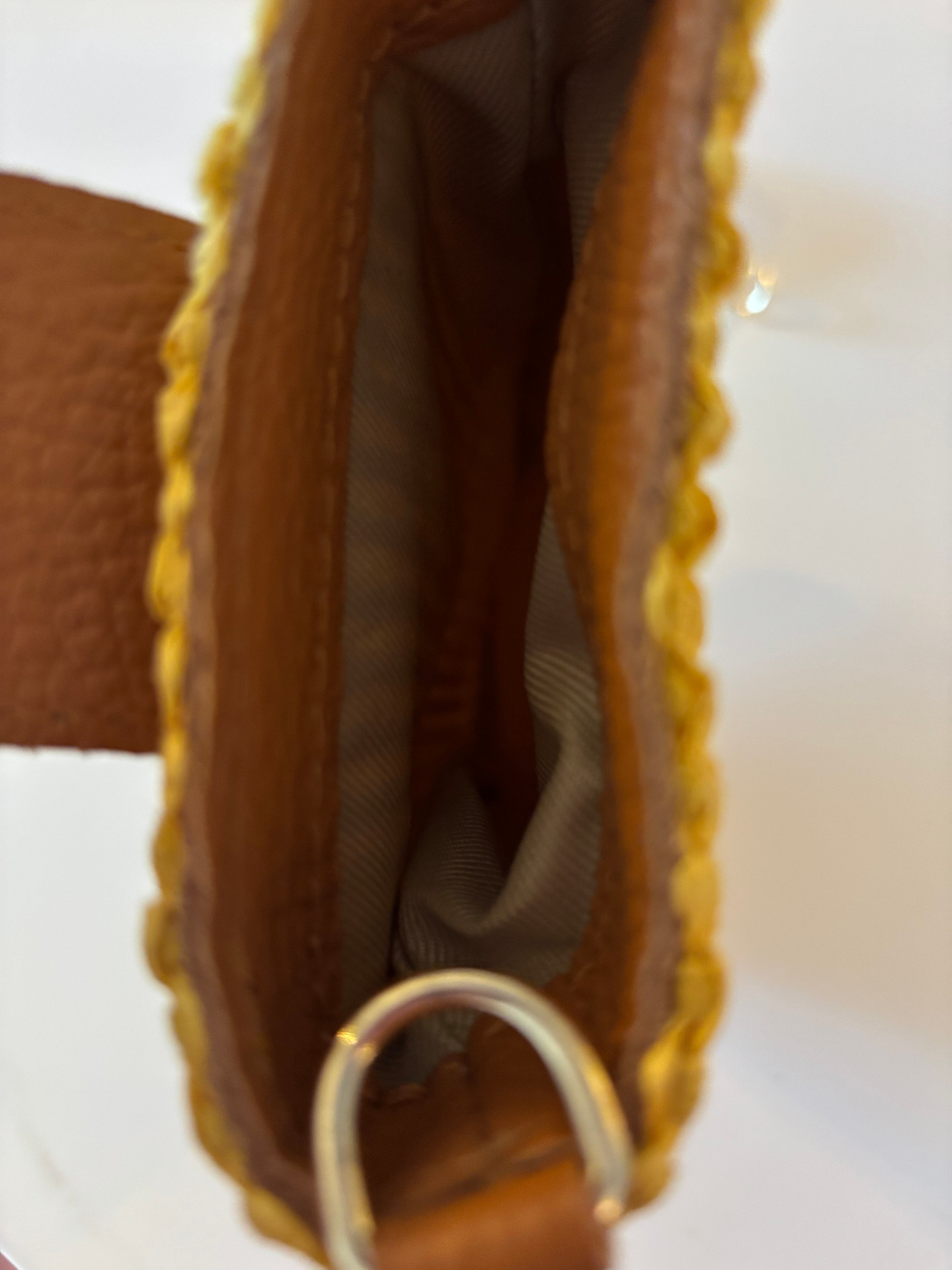 Axelremmen och läderdetaljerna är äkta läder.